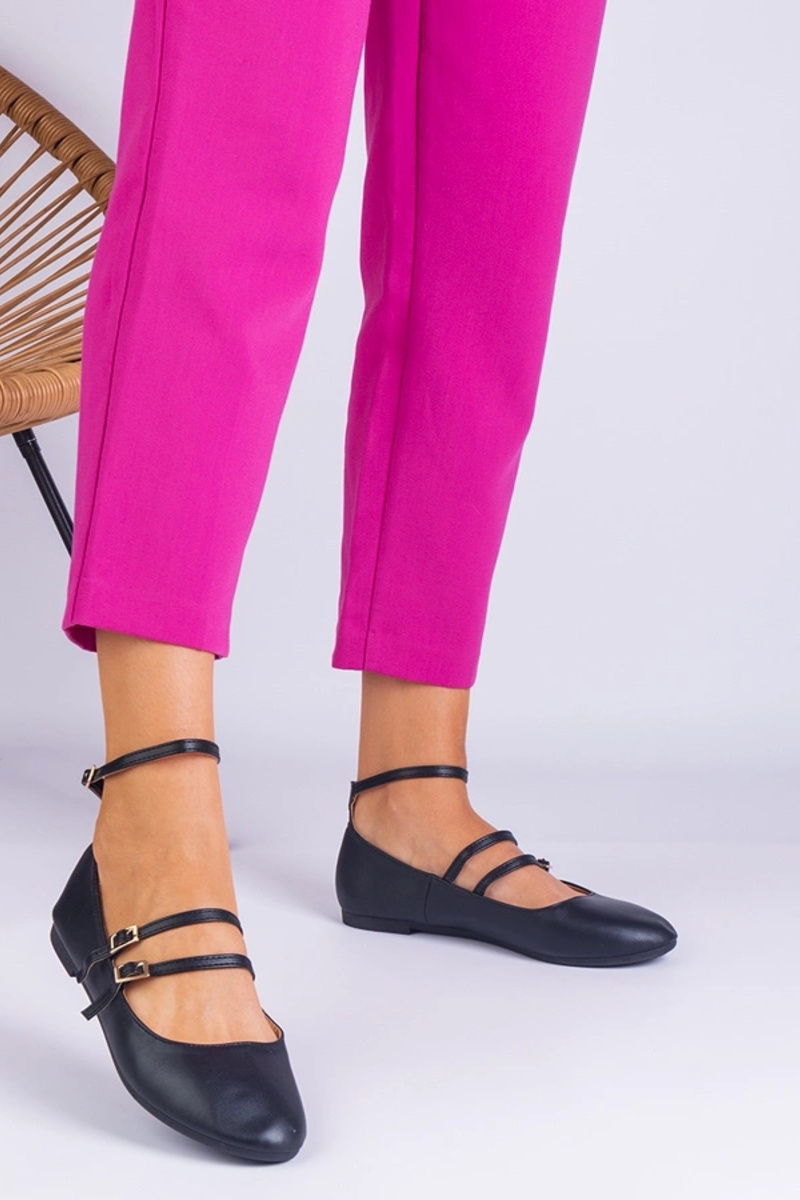 Bailarinas negras de piel sintética con hebillas Vitoldora