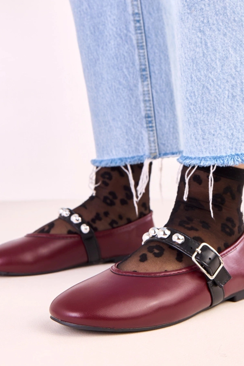 Bailarinas Faira de color rojo oscuro con hebilla decorada