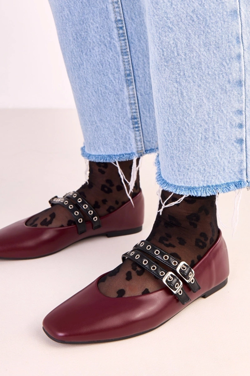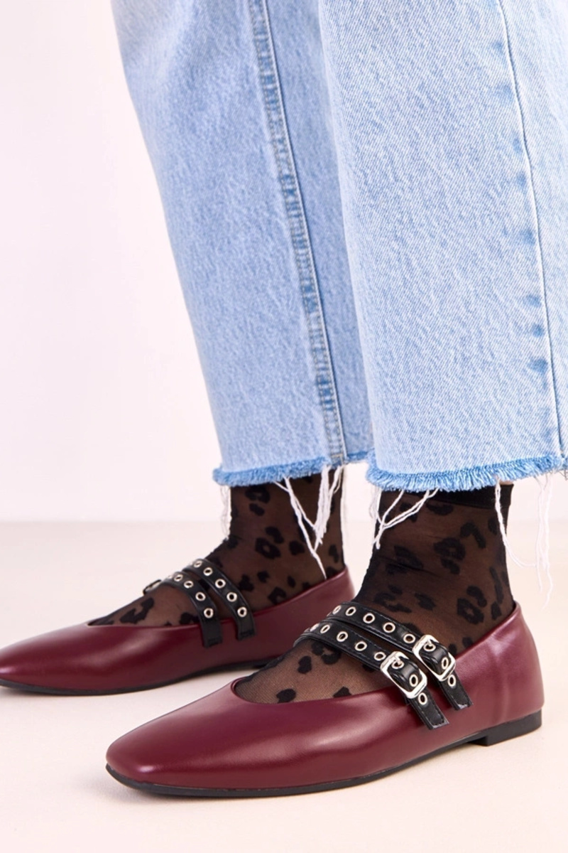 Bailarinas Alfira de color rojo oscuro con punta cuadrada y hebillas