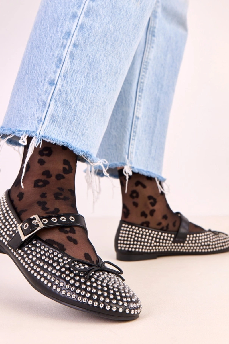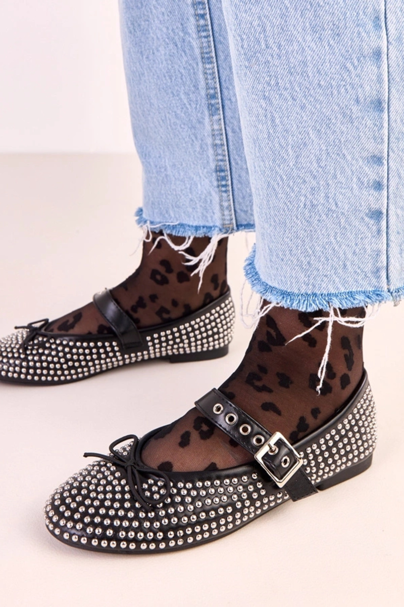 Bailarinas Mylie de color negro, decoradas con tachuelas y lazo