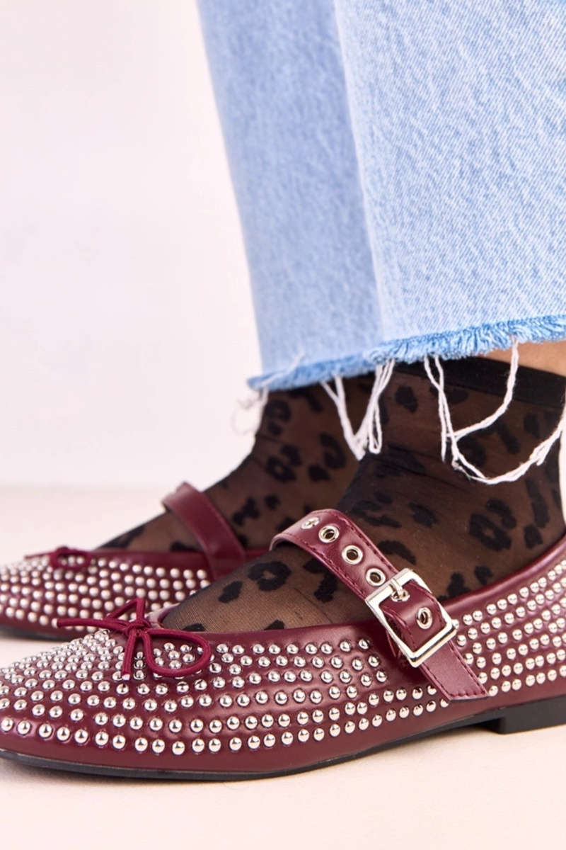 Bailarinas Mylie de color rojo oscuro, decoradas con tachuelas y lazo