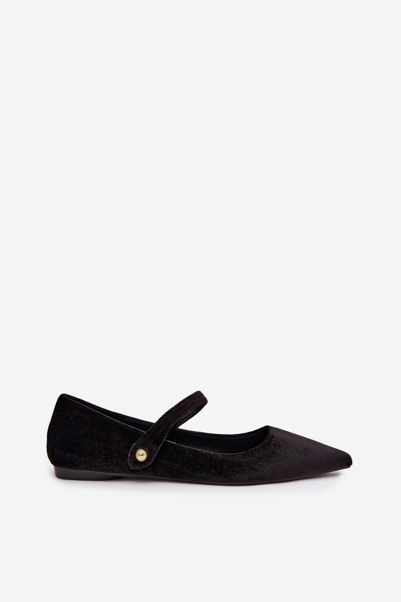 Zapatos tipo bailarina de terciopelo con tiras y detalles dorados, negros Gisanne