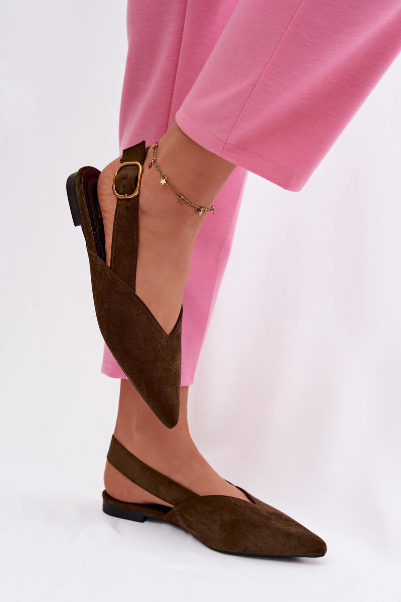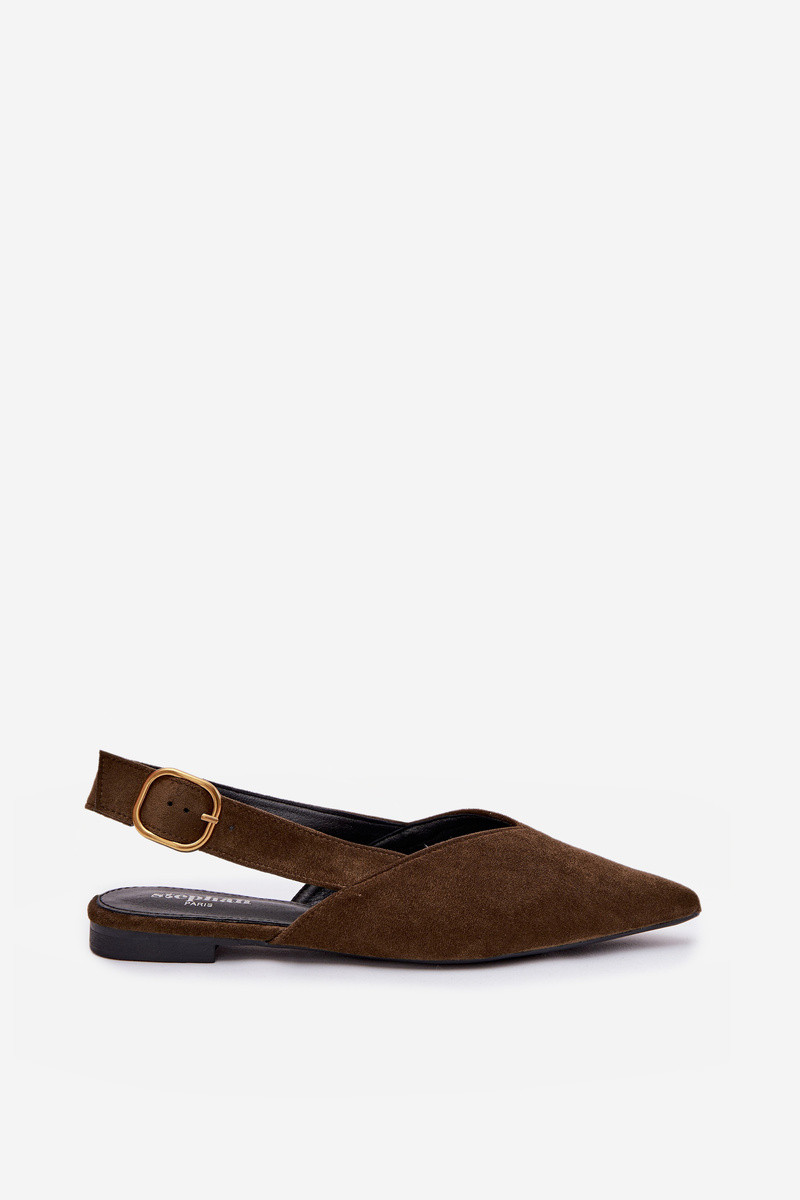 Bailarinas con hebillas doradas de ante sintético, color verde Palerra