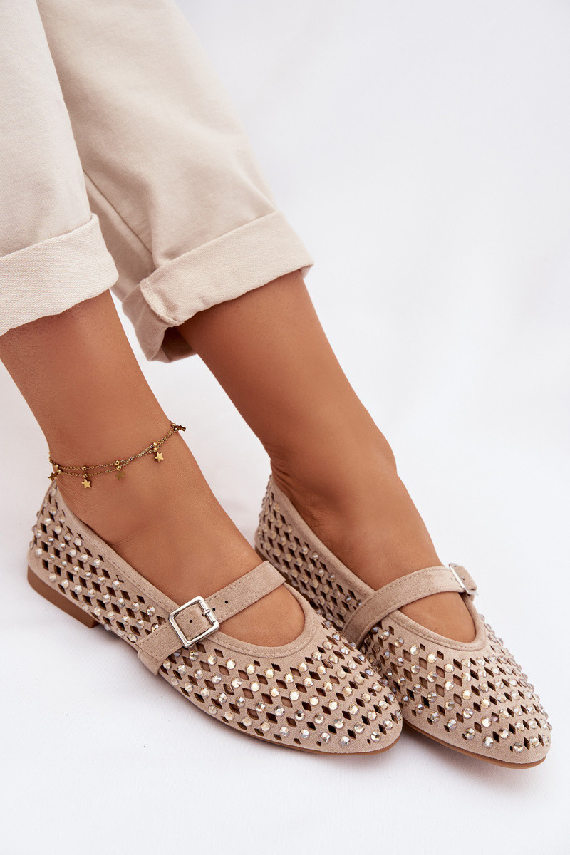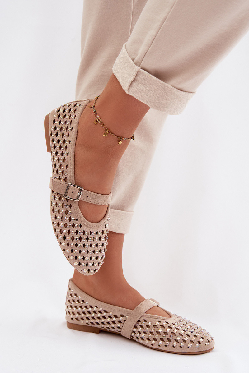 Bailarinas de mujer con elementos calados, brillantes y tiras de color arena Nilvessa