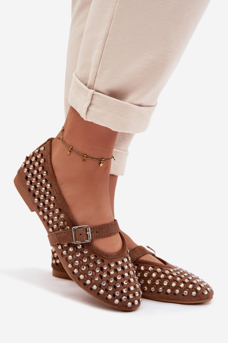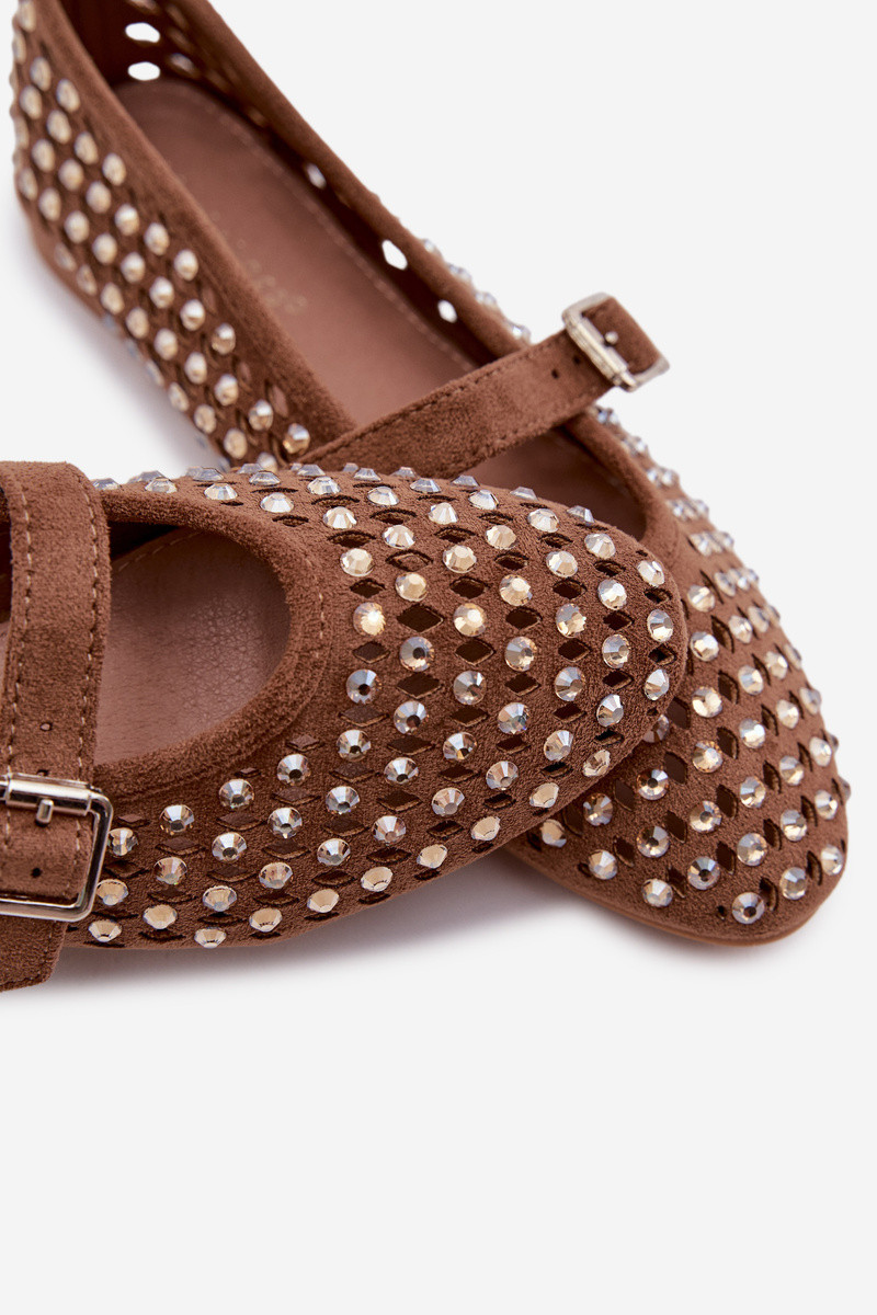 Bailarinas de mujer con elementos calados, brillantes y tiras de color marrón Nilvessa