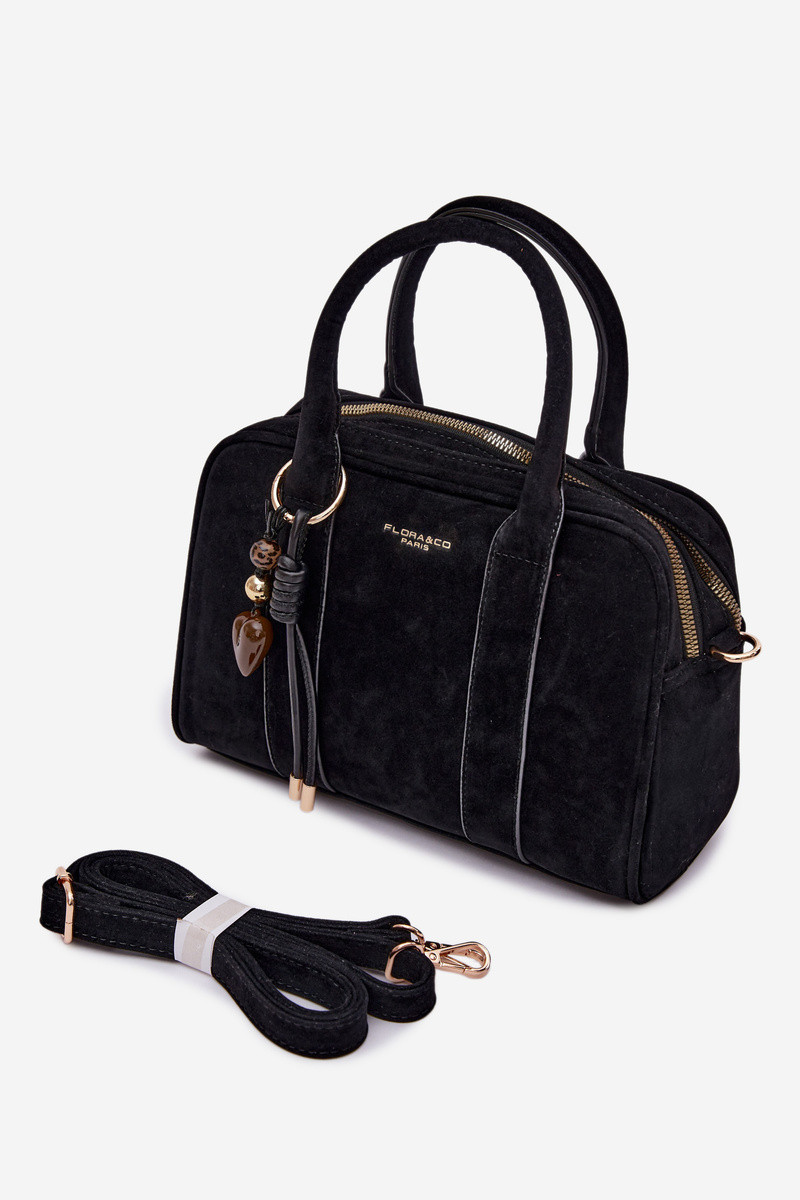 Bolso tipo maleta de ante con llaveros negros Sorielle