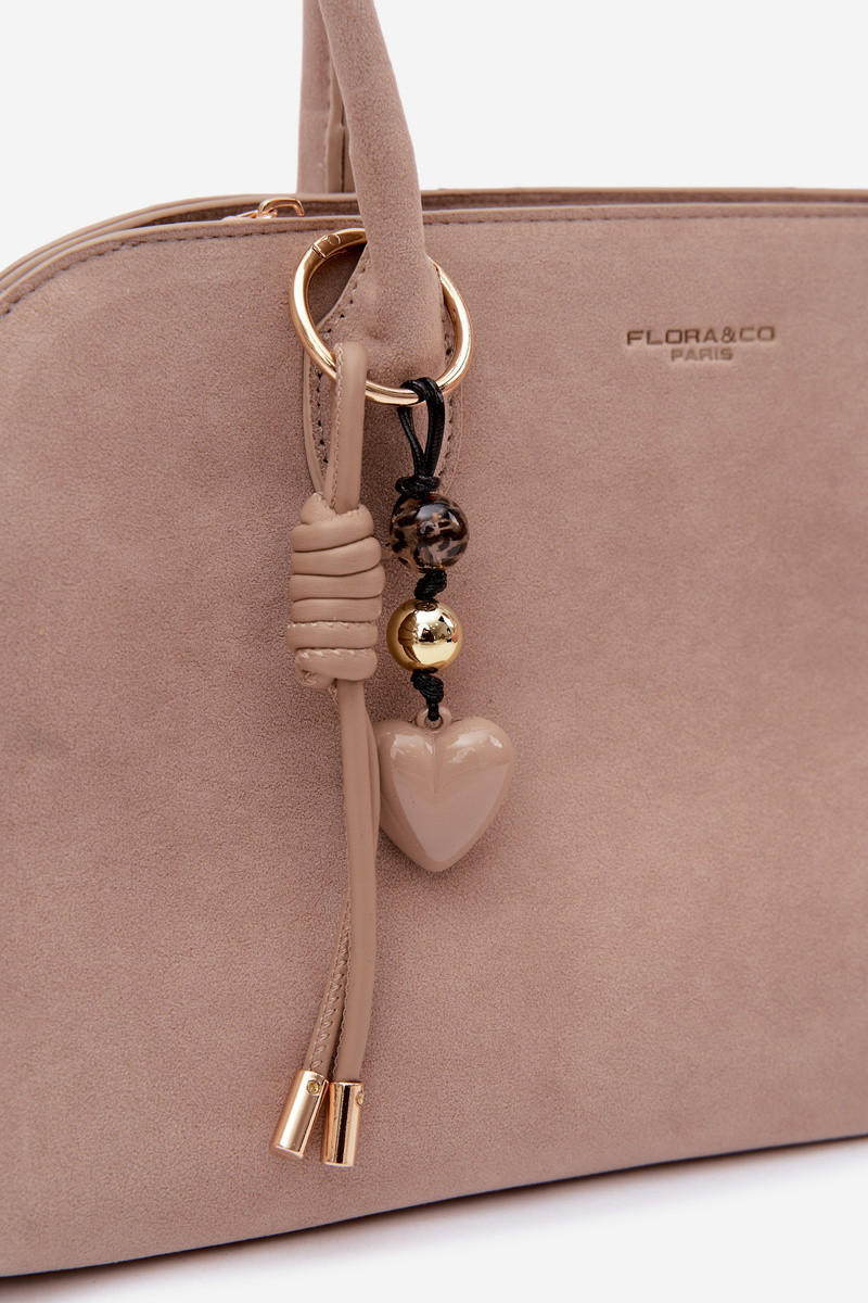 Bolso con colgante y hebillas de ante sintético color arena claro Violette