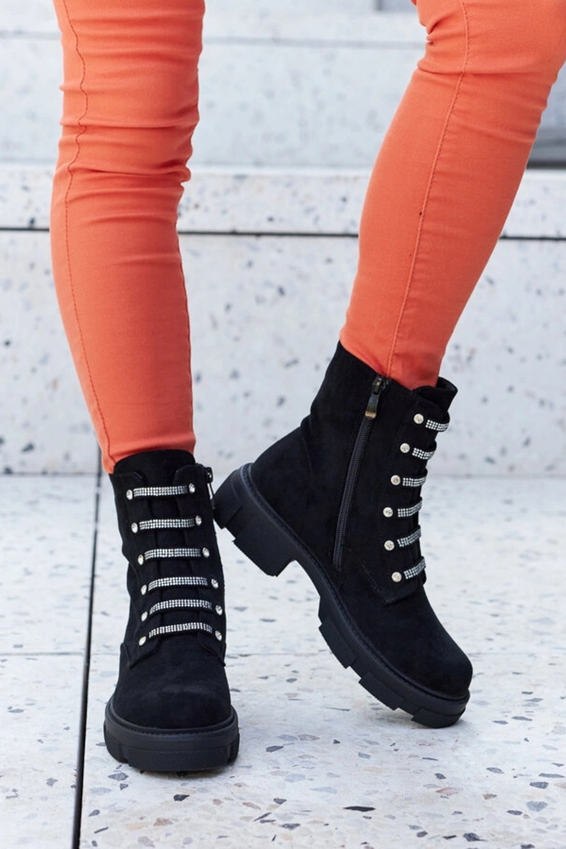 Botas de tobillo negras con circonitas, aisladas de ante sintético Sfaranda