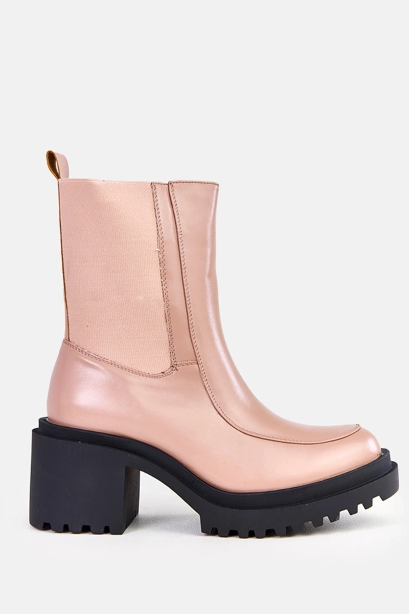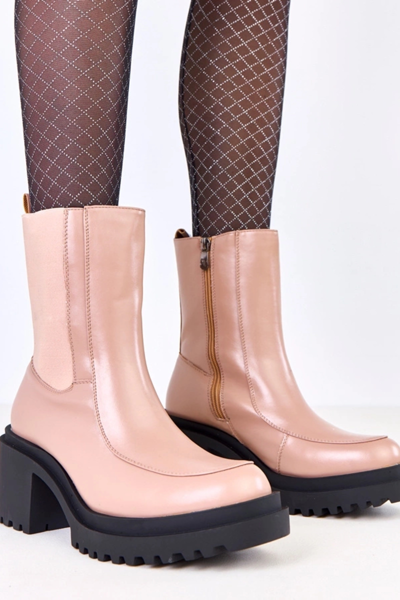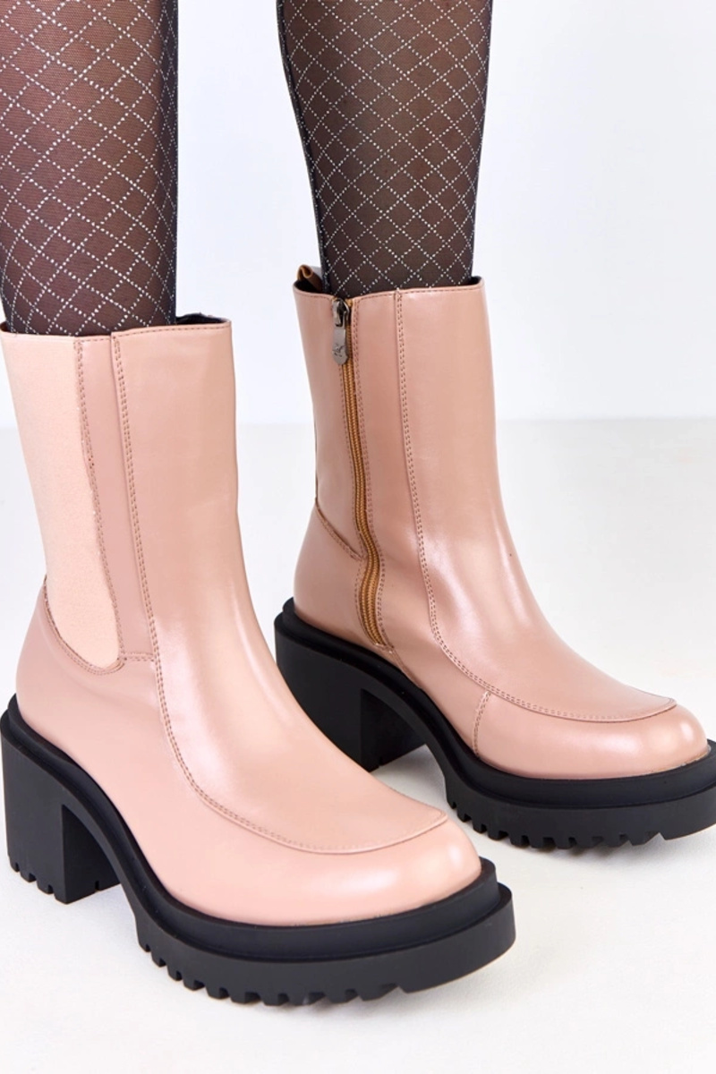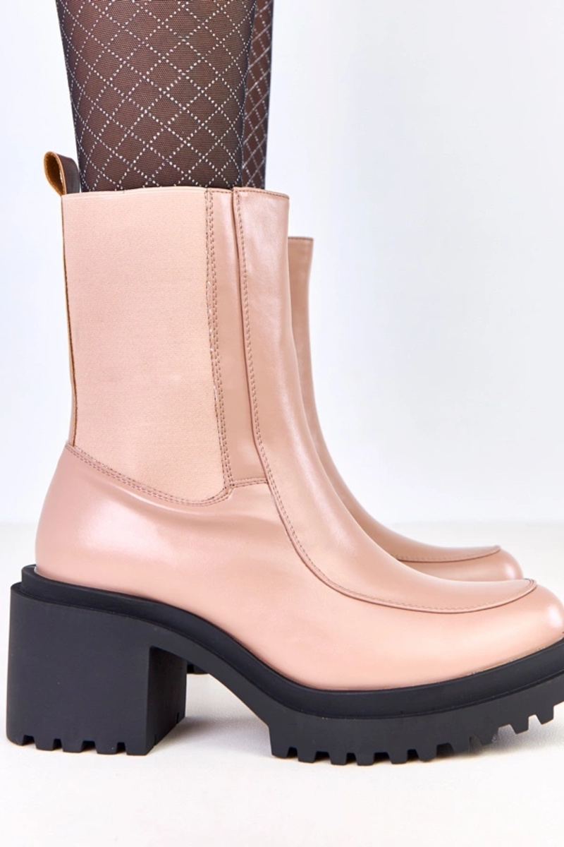 Beżowe botki na słupku z elastyczną wstawką Jarley