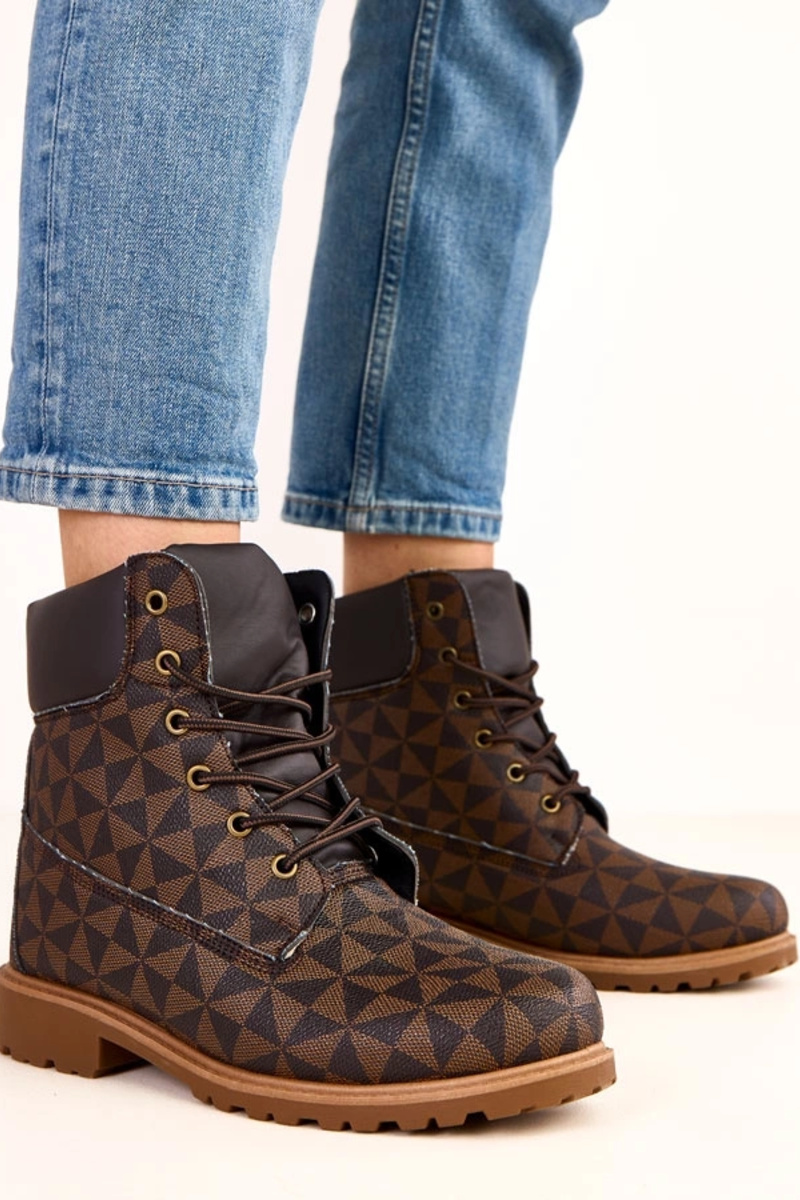 Botas de trabajo negras-marrones con patrón geométrico Alicia