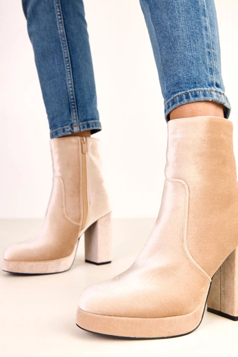 Botines beige de tacón grueso con acabado brillante Asanda