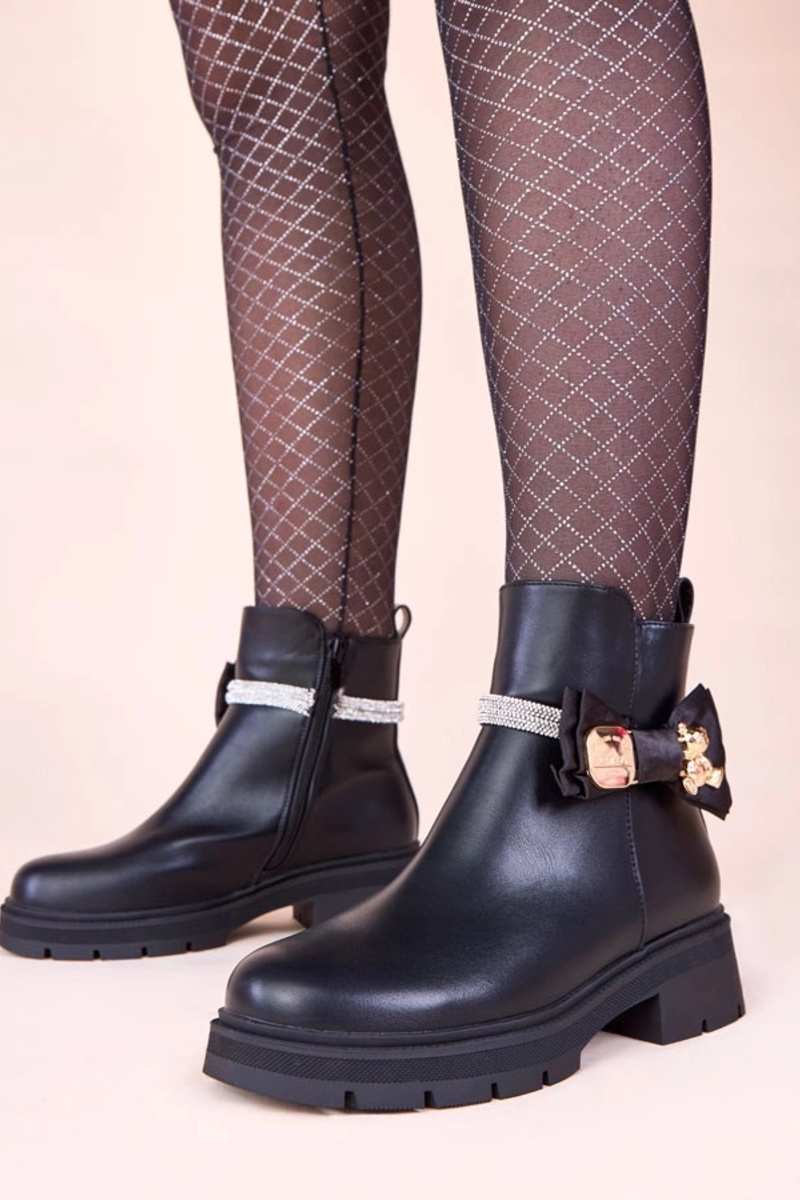 Botines negros decorados con circonitas y lazo con osito dorado Avala