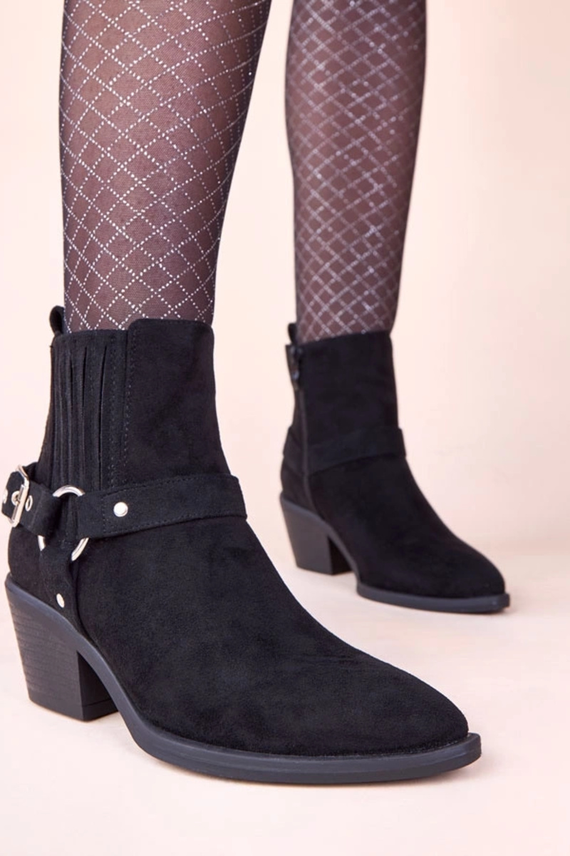 Botines negros con tacón y hebillas decorativas Ritama