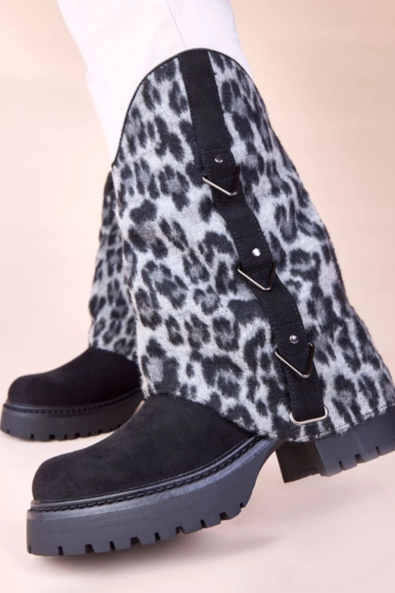 Botines negros con caña enrollada de leopardo Kaylia