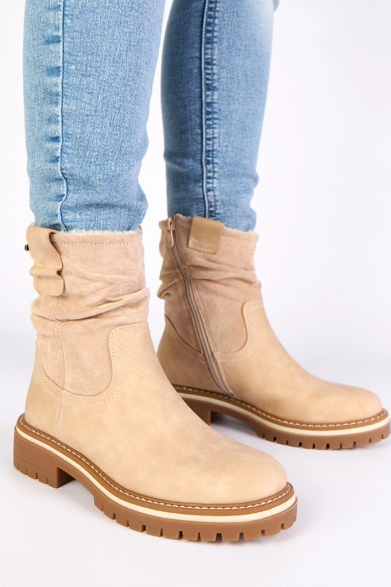 Botines cálidos color arena con caña fruncida Lovisa