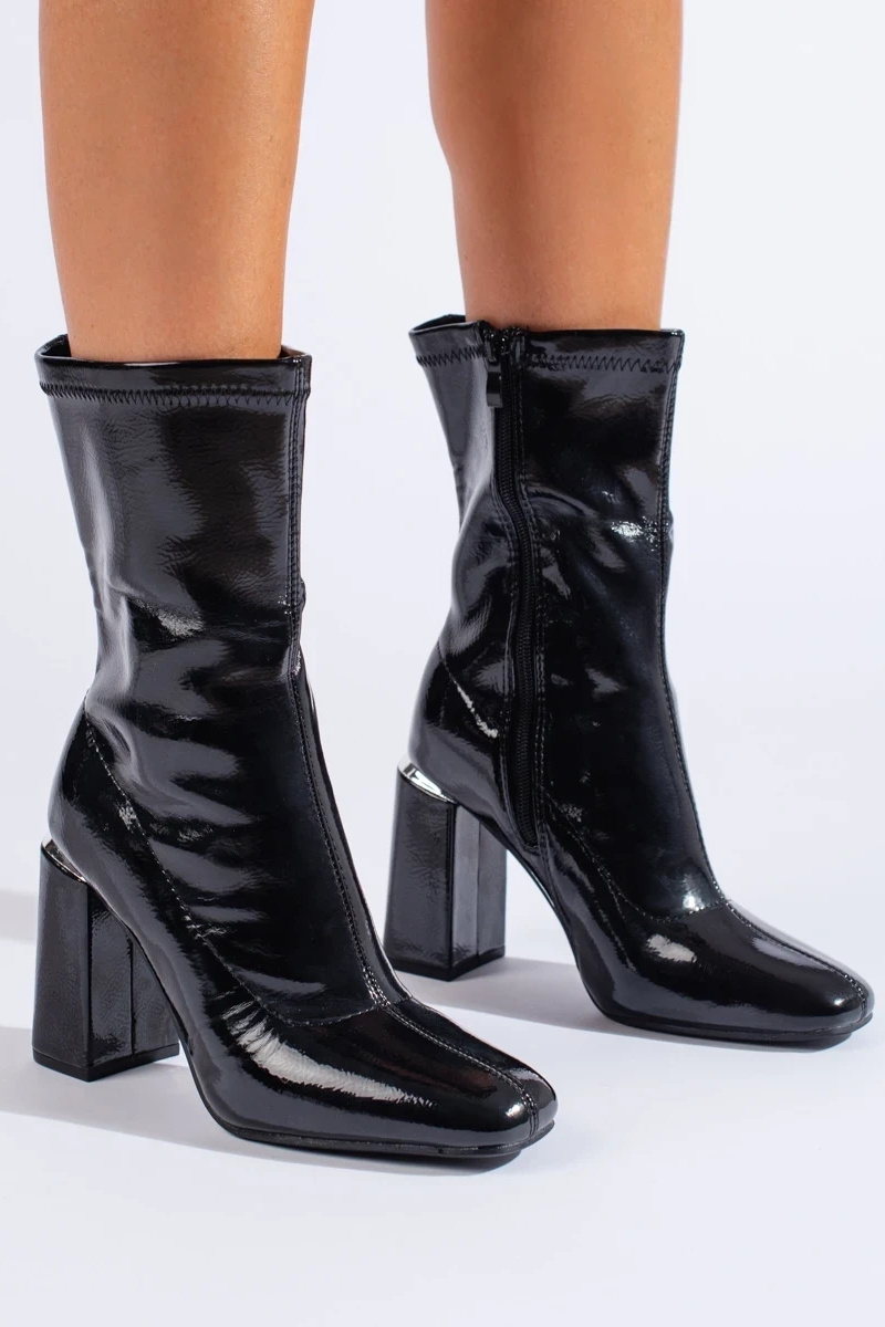 Botas altas para mujer de tacón hechas de piel sintética brillante