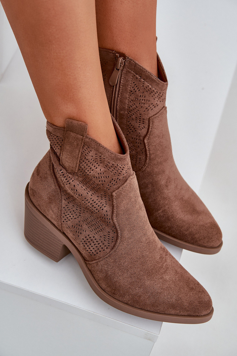 Botines de estilo cowboy de ante sintético perforado S.Barski HY51-061 color marrón