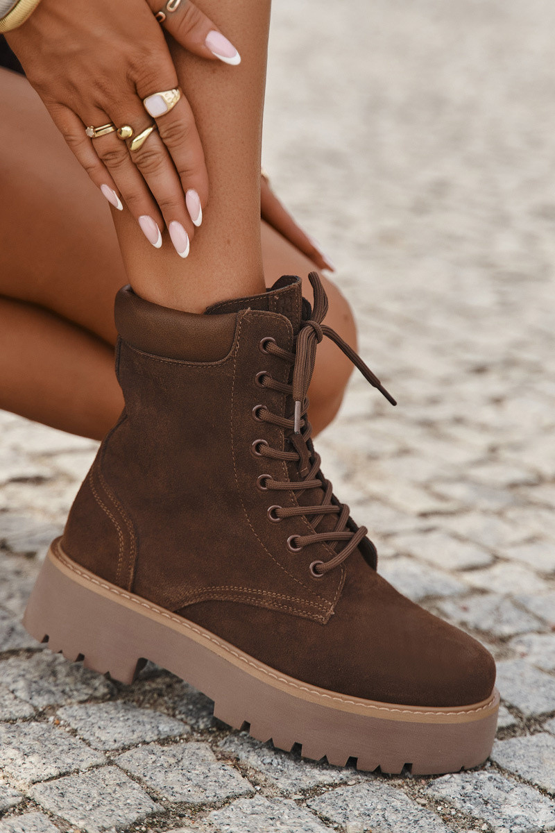 Botines de mujer de ante con cordones Big Star SS274792 marrones