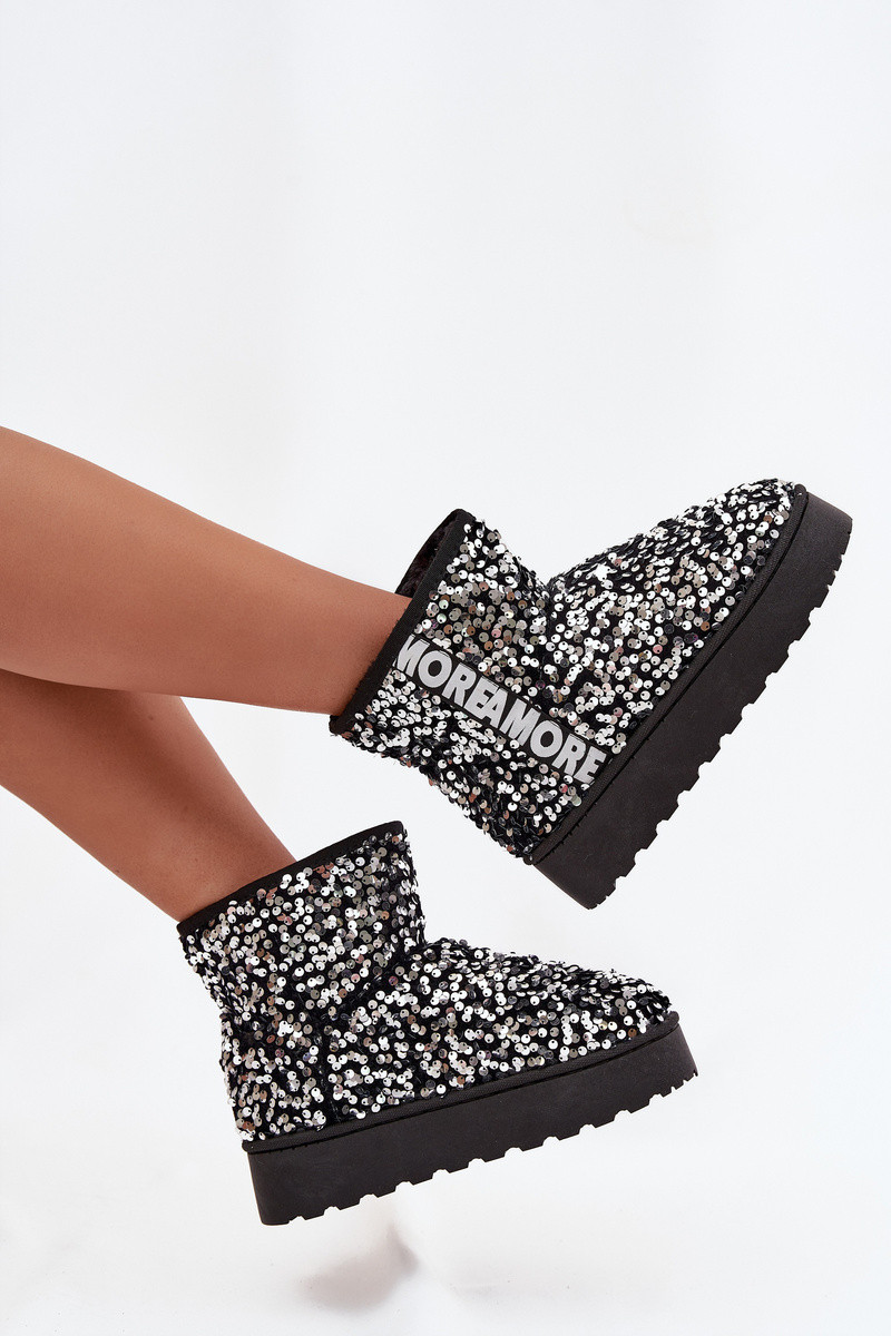 Botas de nieve Femenino con una plataforma Decorado con brillo Negro y-color plata Silmo