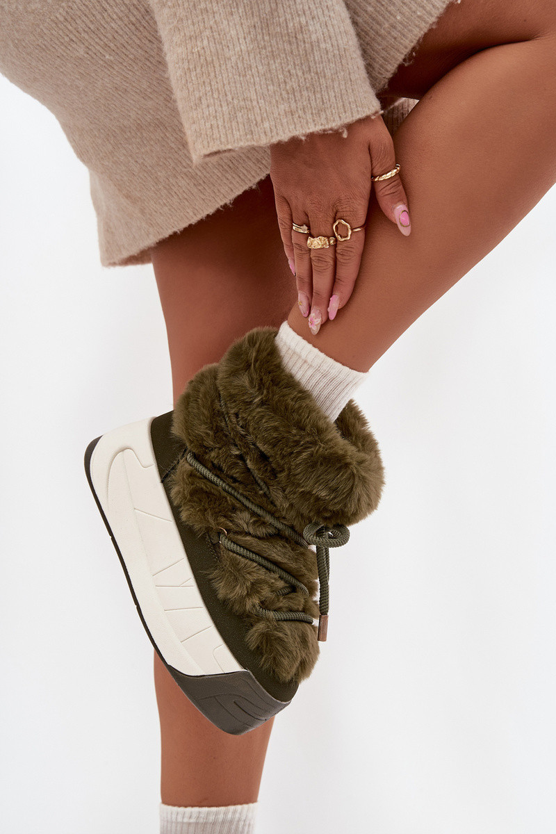 Botas de nieve Femenino con una plataforma con detalles elegantes y un abrigo de piel de color caqui Kalivira