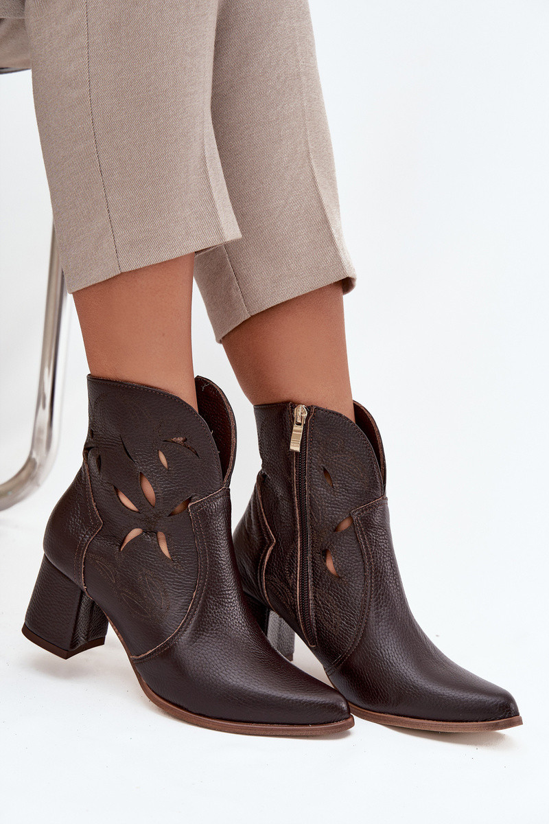 Piel con elementos calados Botas de mujer Zazoo 3647 CzekoladoAe