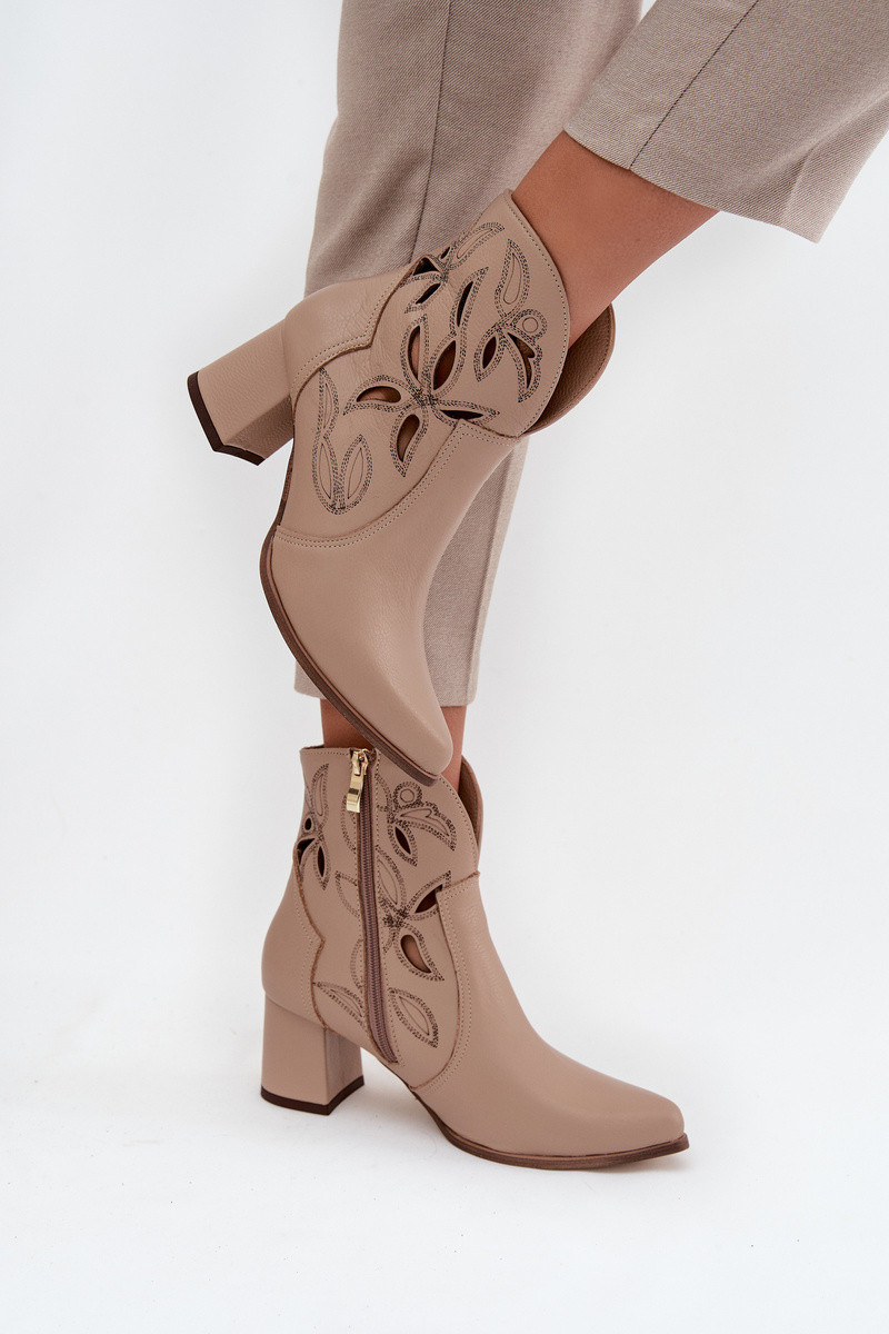 Piel con elementos calados Botas de mujer Zazoo 3647 color marfil