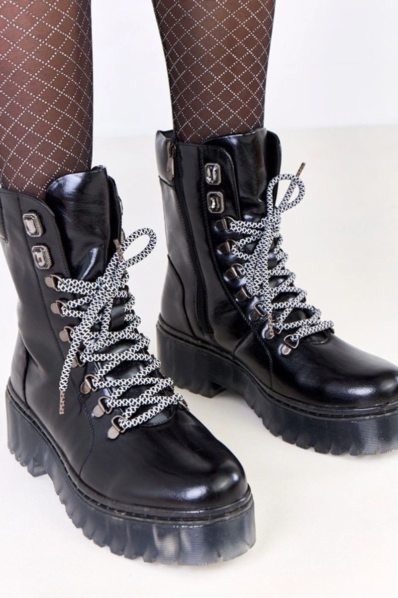 Czarne traperki na platformie z kryształkami Veles