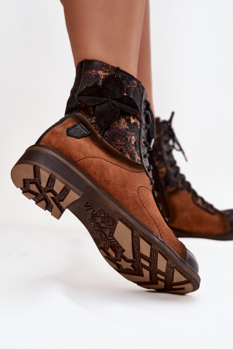 Botas de mujer de cuero natural con tacones anchos Tai turiciejka 07004-29 en marrón