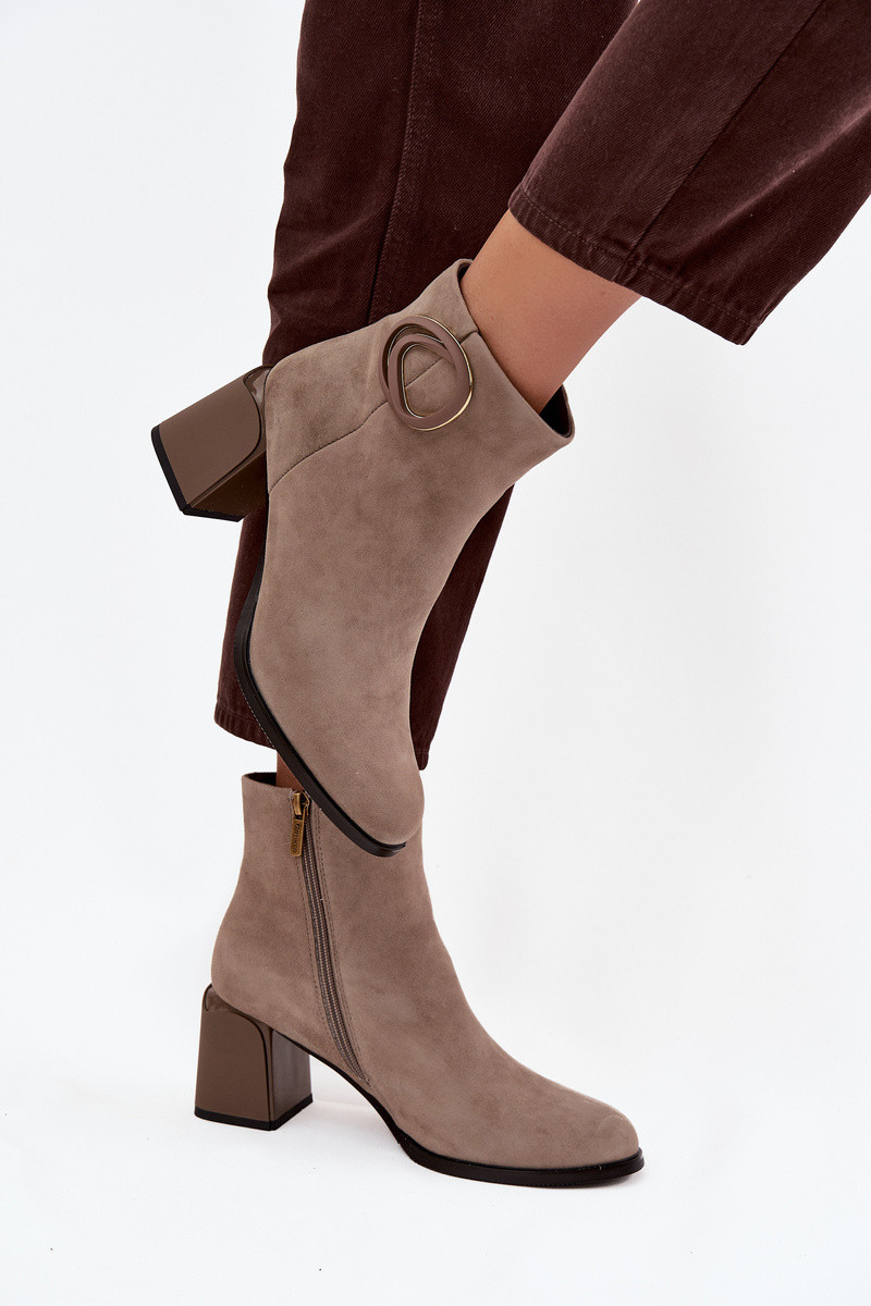 Botas de gamuza cálidas con tacón y detalles decorativos Artiker 57C0014 en color arena