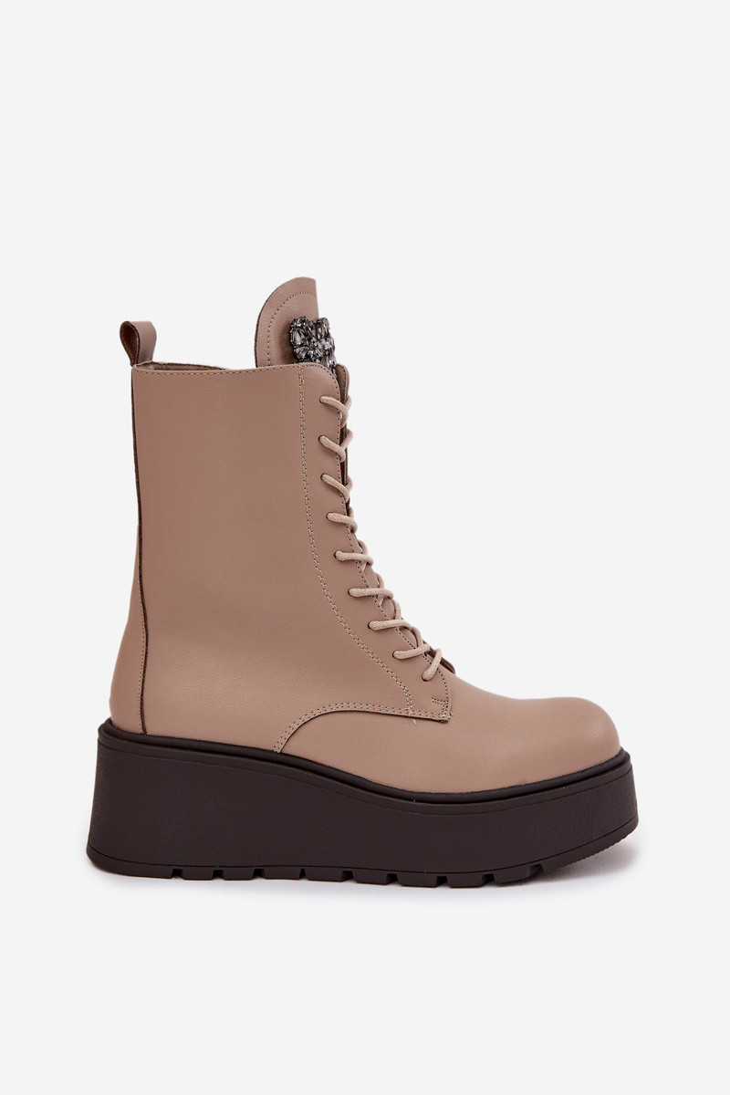 Piel Botas de mujer con adornos calentamiento beige Ulrika