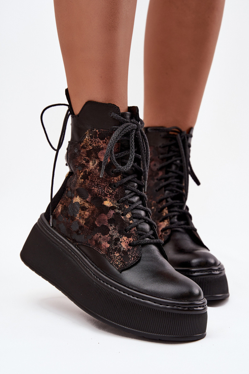 Botines de cuero con plataforma Tai turiciejka 07086-01 color negro