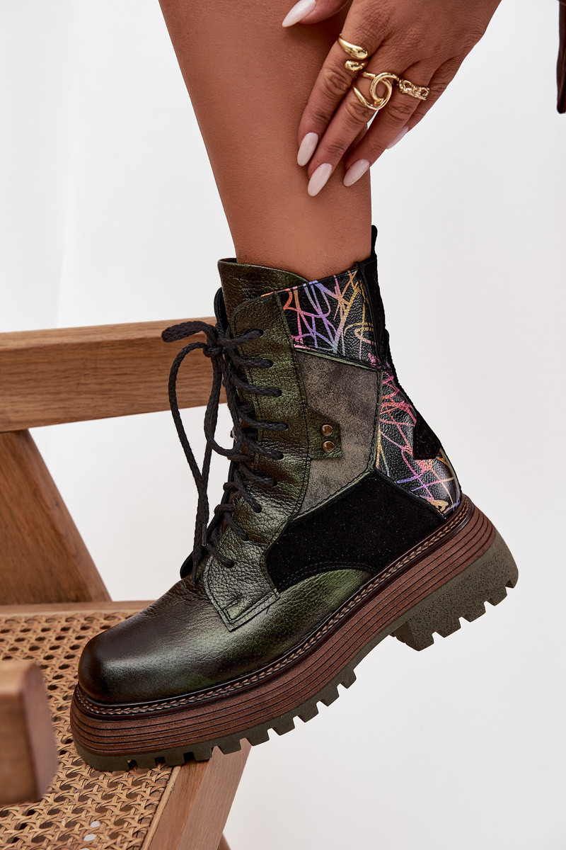 Piel botines de trabajo Femenino con una plataforma Tiene queciejka 07104-09 de color caqui