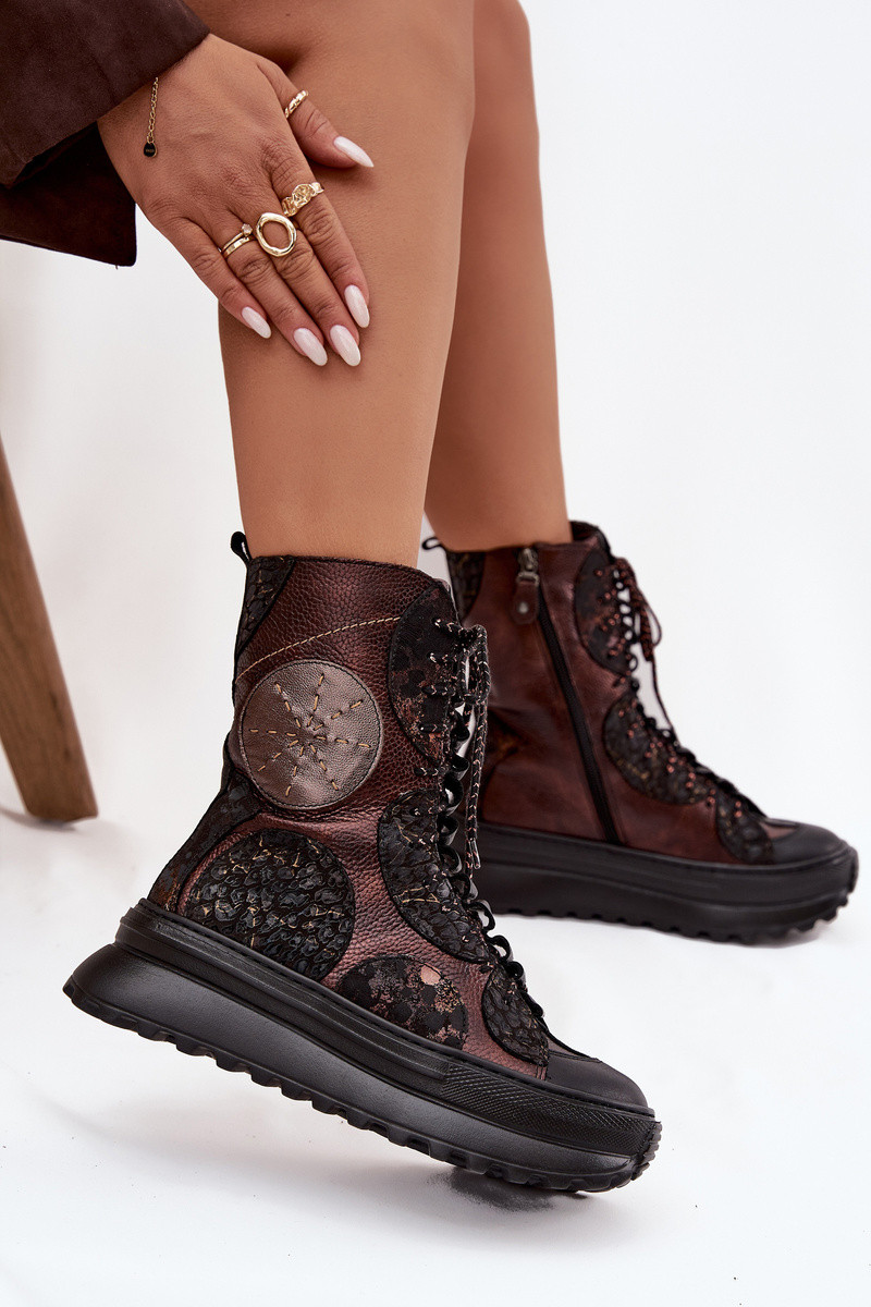 Botines de cuero con plataforma forrados Tai turiciejka 06565-02 color marrón-dorado