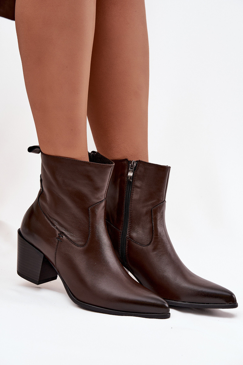 Botines de cuero estilo cowboy para mujer con tacones forrados Zazoo 60565 chocolate