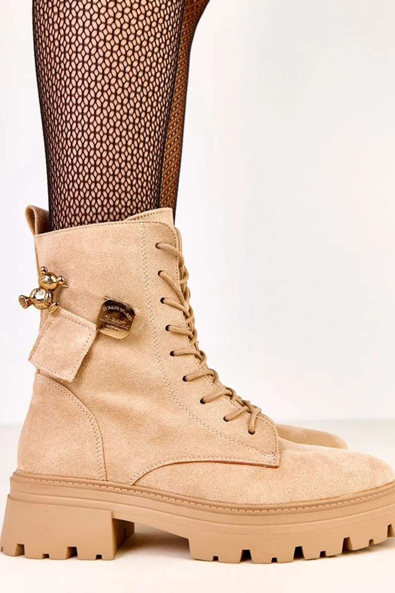 Botas de ante color arena adornados con oso y hebilla Hariet