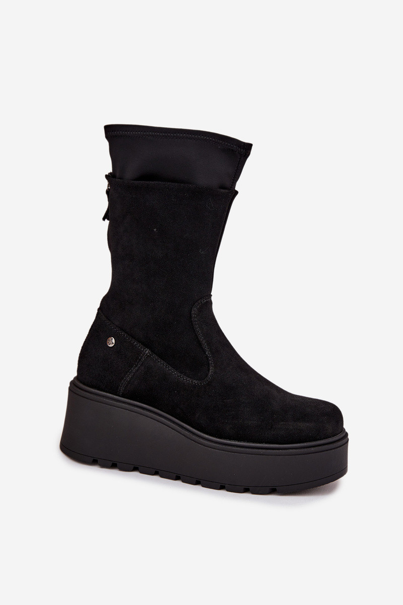 Femenino Piel Zapatos de gamuza con una plataforma Tiene queciejka A7161-20 de color negro