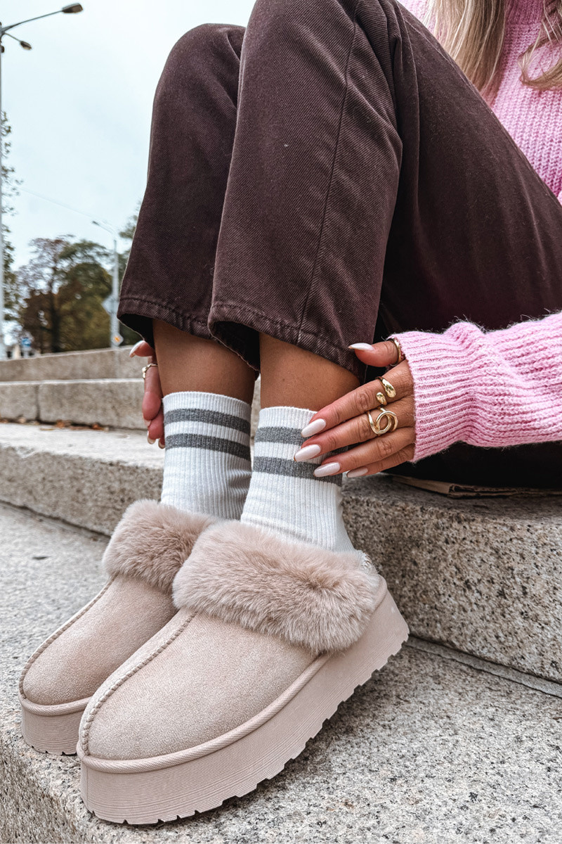 Botas de nieve Femenino con una plataforma con un abrigo de piel I Haftem beige Querina
