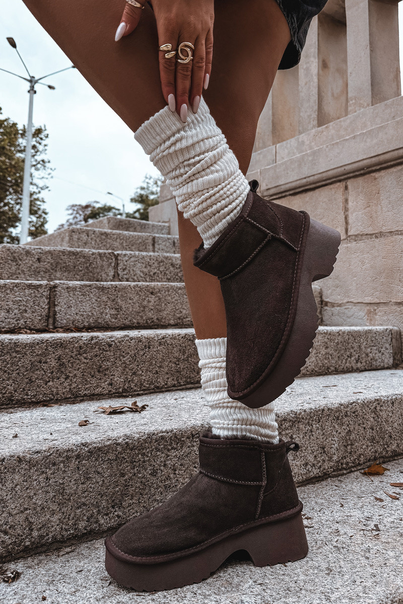 Botas de nieve para mujer de ante natural forradas con pelo interior color chocolate Milora