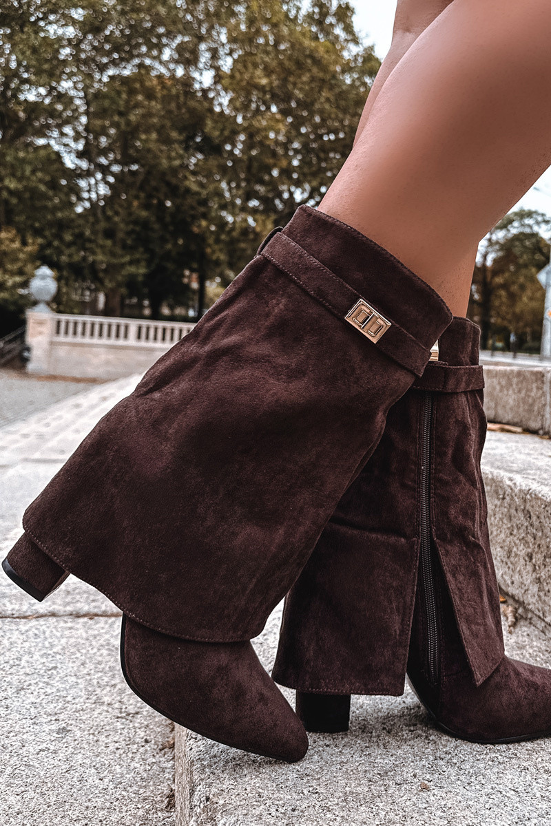 Botines acolchados de mujer con tacones decorados color chocolate Luvielle