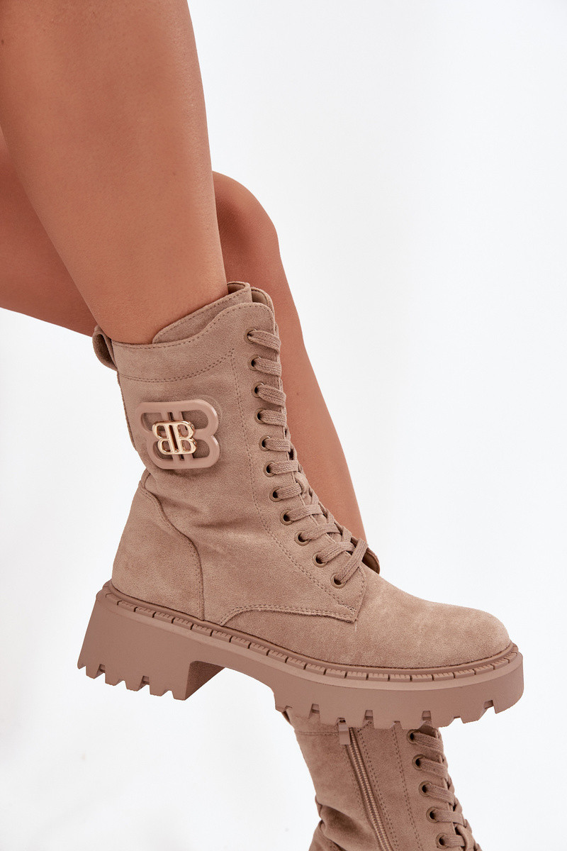 Botines de mujer con elementos decorativos acolchados color arena Kalindra