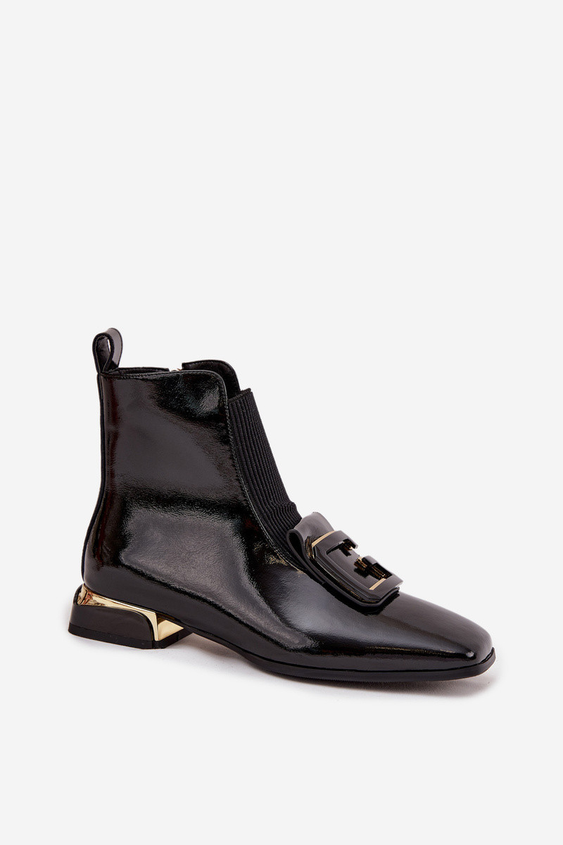 Botines de mujer de piel sintética lacada de tacón bajo con adornos D&A MR52-216 en negro