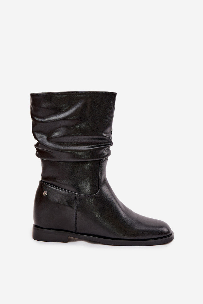 Botines de piel negra para mujer con volantes, forrados Tai turiciejka K7211-01