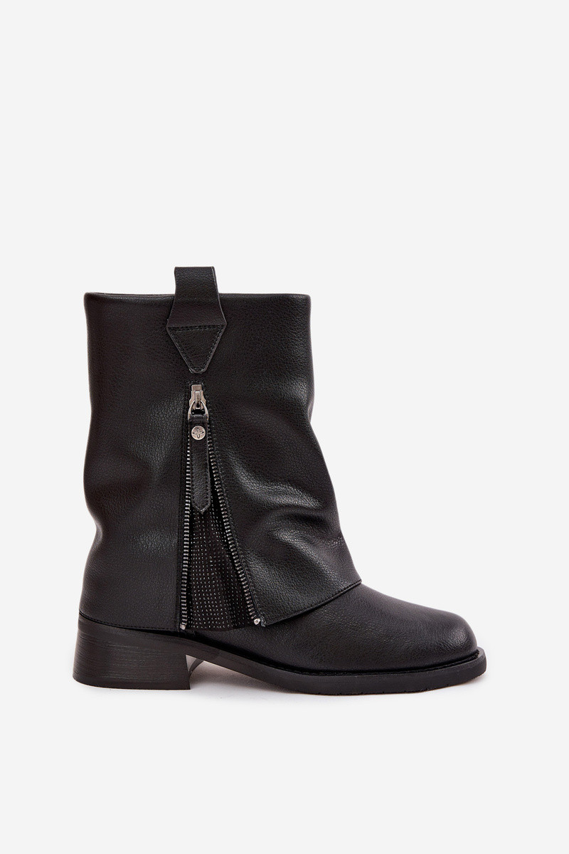 Botines de piel negra para mujer con tobillo cosido y plataforma Tai turiciejka K7213-01