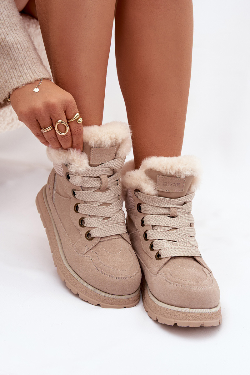 Botas de nieve de ante color arena con plataforma y piel Big Star SS274371