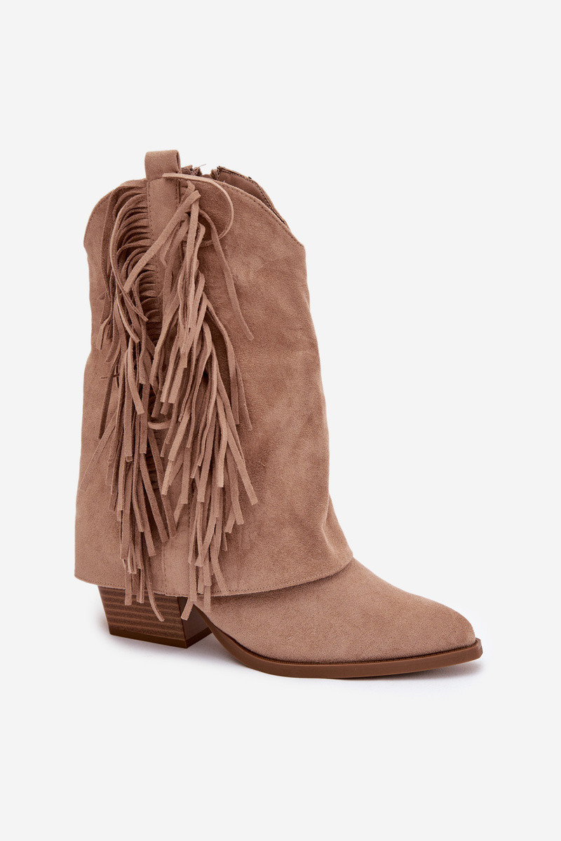 botas estilo vaquero Femenino con flecos con tacones de color caqui Gralina