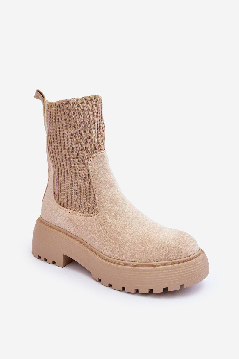 Zapatos de gamuza con plantilla tipo calcetín con una plataforma Y tacones planos beige ReAam