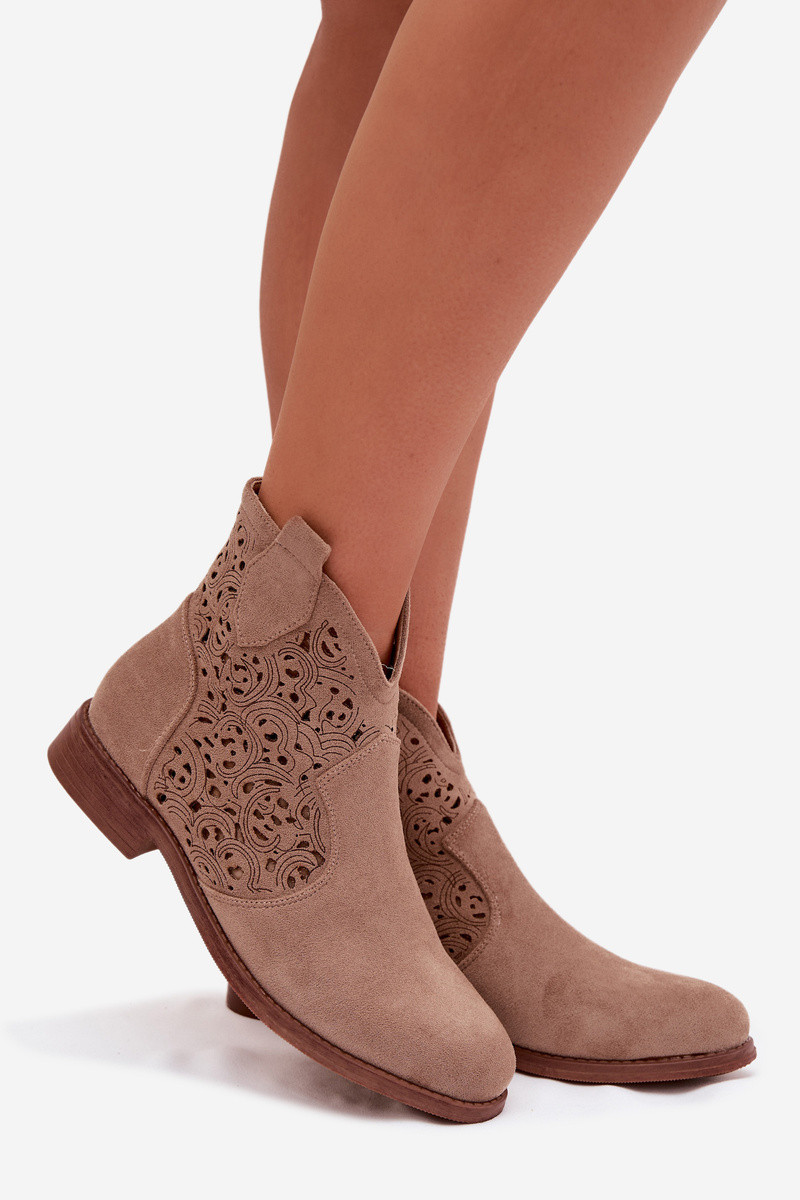 Botines de mujer con tacones anchos color arena S.Barski HY61-8026