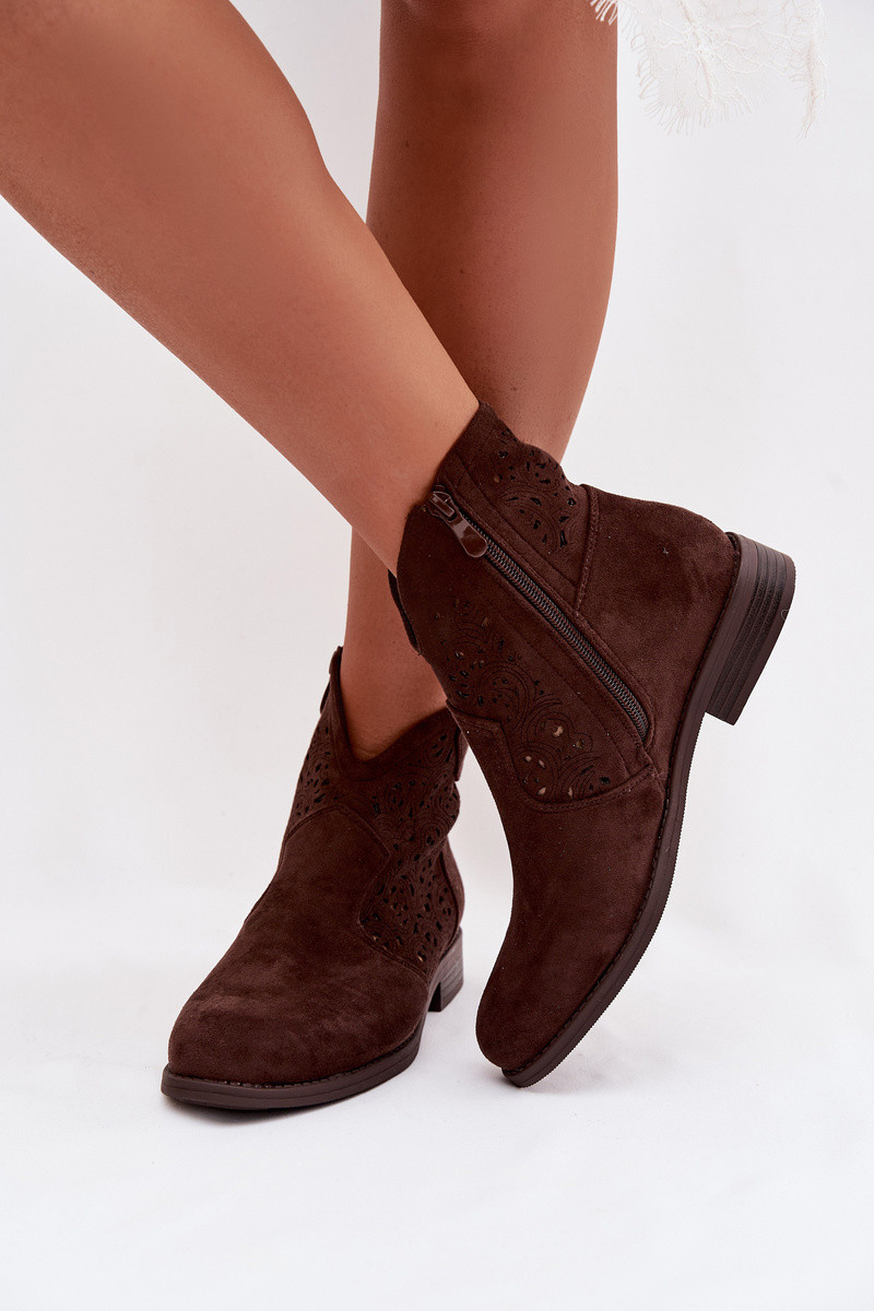 Botines de mujer con tacones anchos color chocolate S.Barski HY61-8026