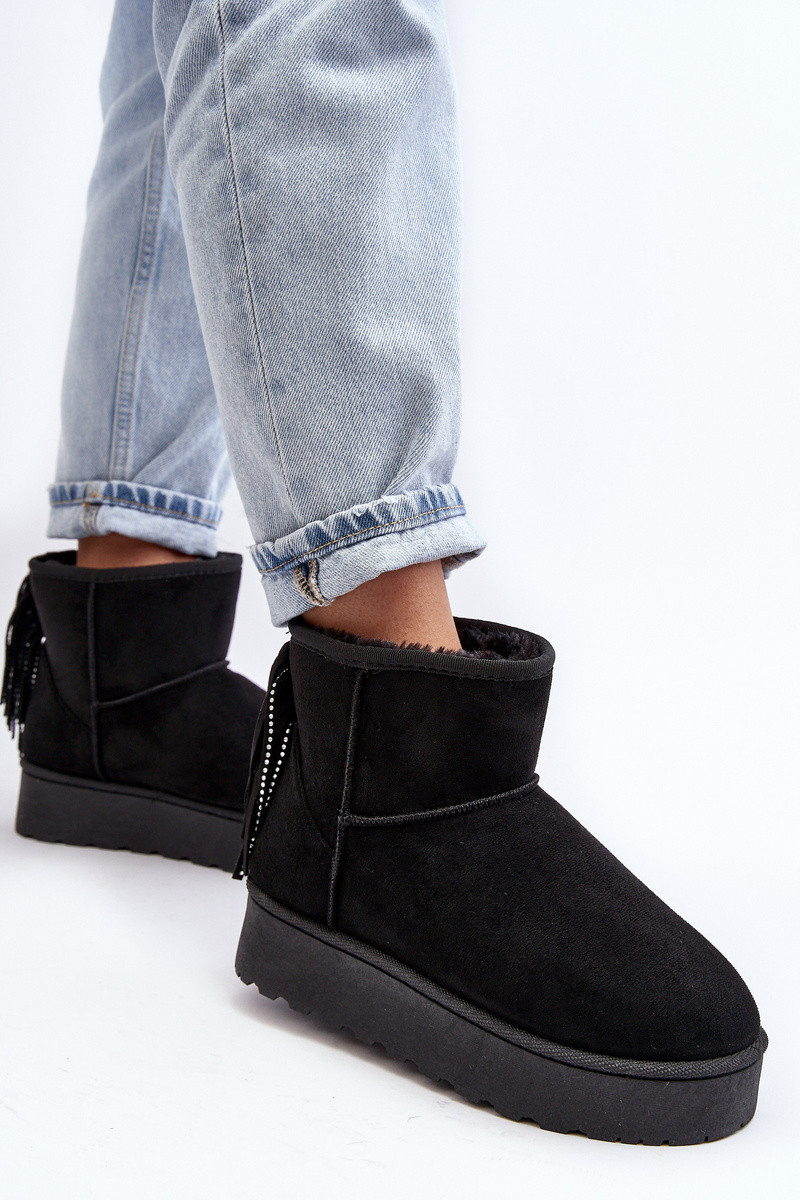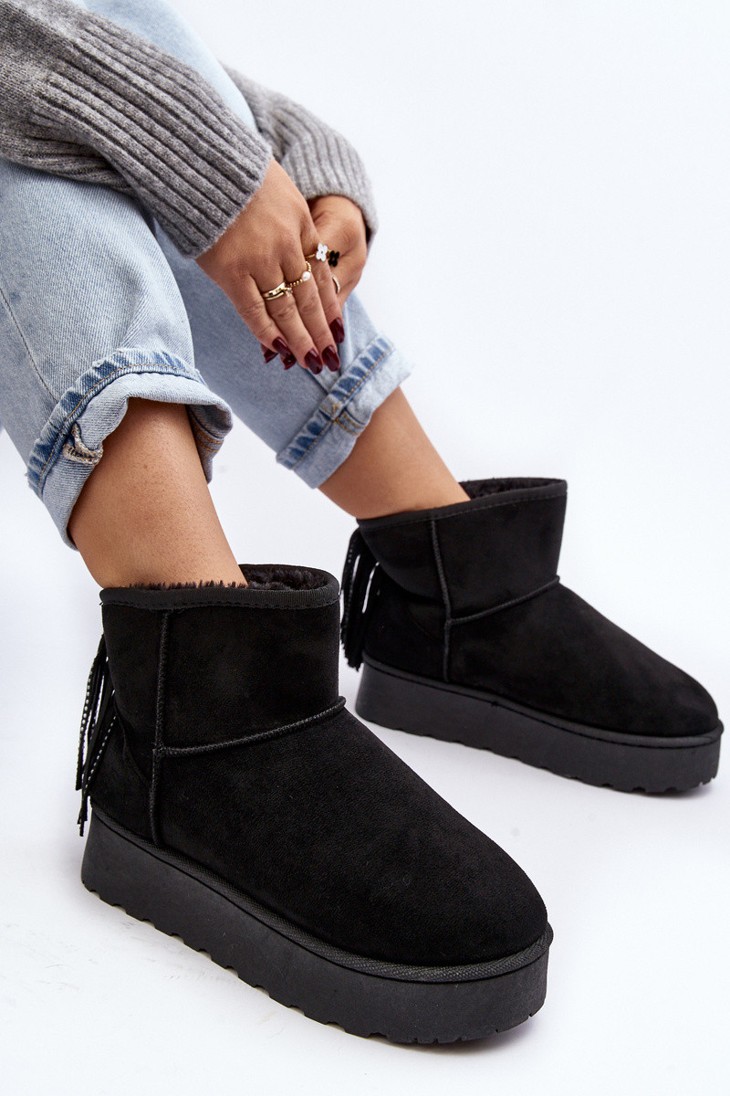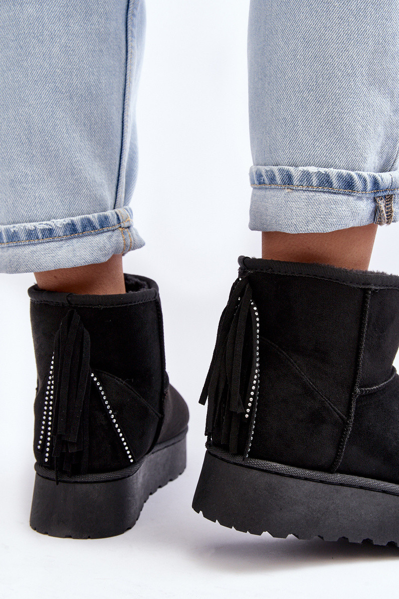 Femenino Botas de nieve con una plataforma con flecos de color negro Lirico