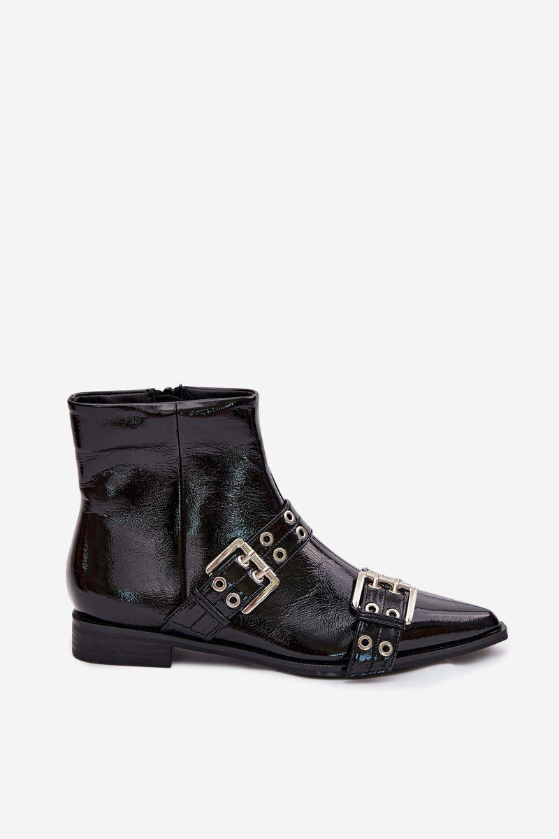 con efecto barniz Botas de mujer con tacones anchos con rayas I con hebillasmi de color negro Hamira